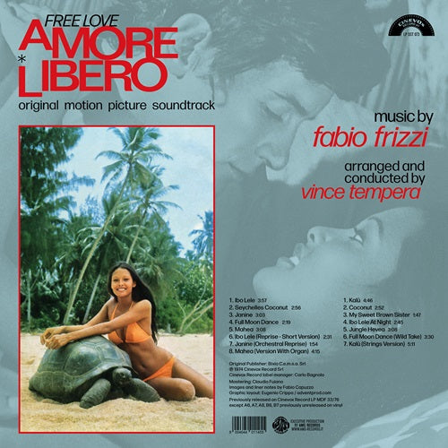 EXCEPTIONAL CINEVOX EXCLUSIVE FOR RECORD STORE DAY 2026! THE FIRST SOUNDTRACK COMPOSED BY LEGENDARY FABIO FRIZZI RECORDED IN 1974 BY GOBLIN’S “PROFONDO ROSSO/DEEP RED” FANTASTIC LINE-UP! Amore Libero – Free Love marks the first film score composed by Fabio Frizzi, written in 1974 for the movie of the same name directed by Pier Ludovico Pavoni.